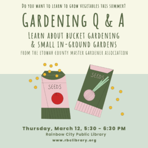 Rainbow City Community Center (3702 Rainbow Drive) Wednesday’s & Thursday’s 11:30-3:30pm January 28th – April 15th PLEASE BRING YOUR PHOTO ID, SOCIAL SECURITY CARDS. LAST YEAR’S TAX RETURN AND ALL W-2s & 1099s. THIS PROGRAM IS BROUGHT TO YOU BY RSVP OF ETOWAH COUNTY, ETOWAH COUNTY COMMISSION AND SPONSORED BY THE IRS. CALL 256-549-8147 FOR MORE INFORMATION.